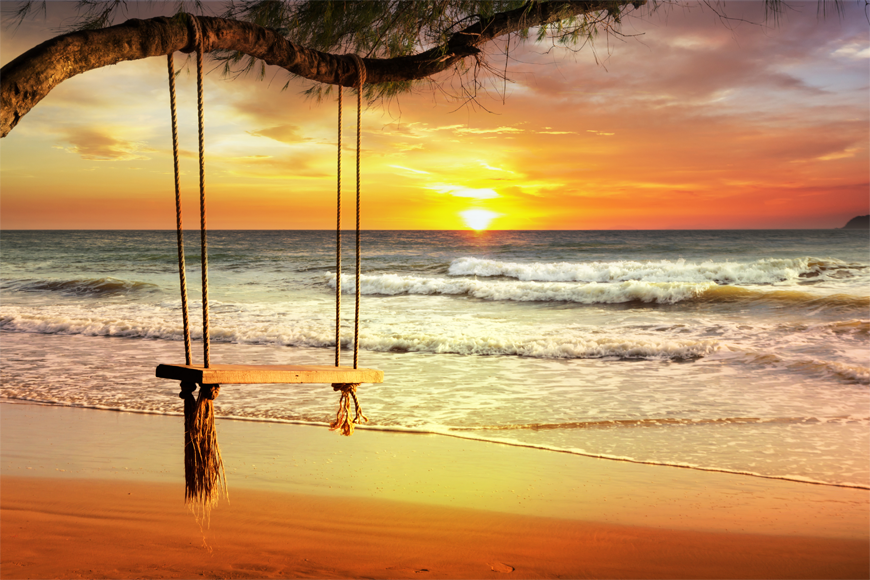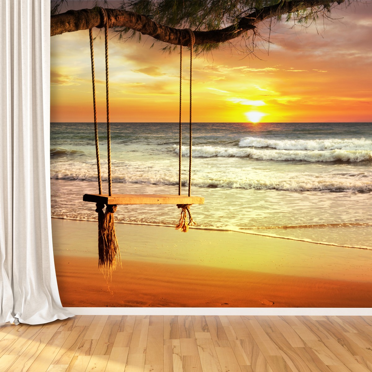 Se trata de una espectacular fotografía de una playa exótica, justo en el momento del atardecer y puesta de sol que combina perfectamente con elementos blancos y suelos de parquet. ¡Selecciona tamaño personalizado y verás lo fácil que es colocarlo!