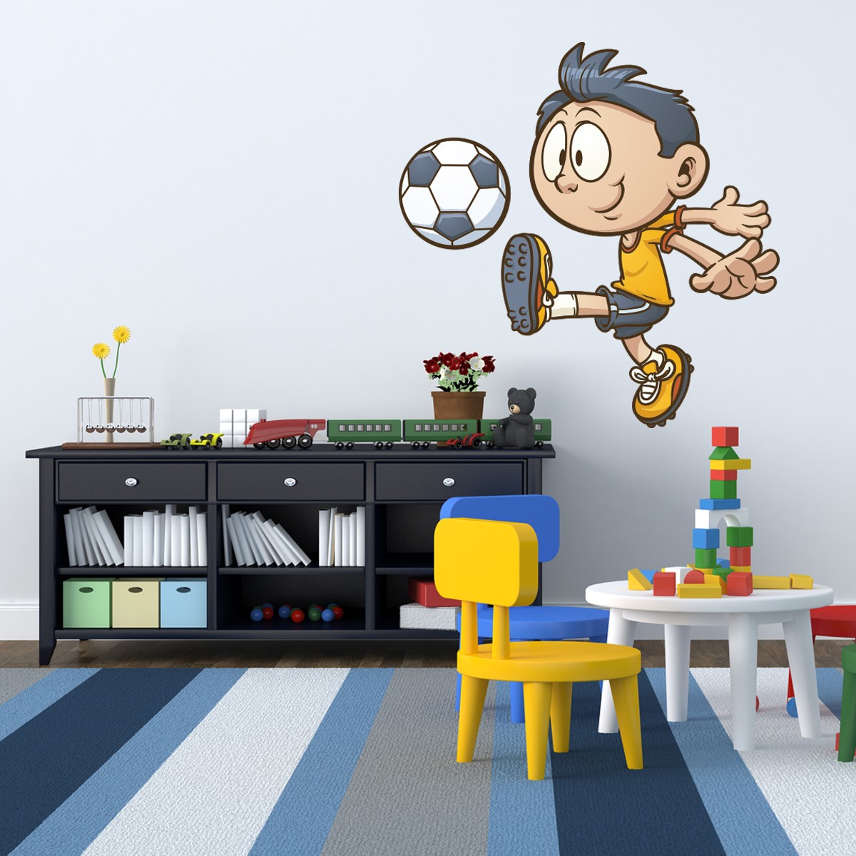 ¿A tu peque le gusta el fútbol? Este vinilo infantil de un futbolista seguro que le encanta.