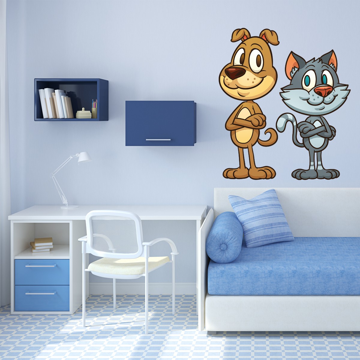 Divertido Vinilo de Perro y Gato ideal para colocarlo en la habitación infantil de la casa.