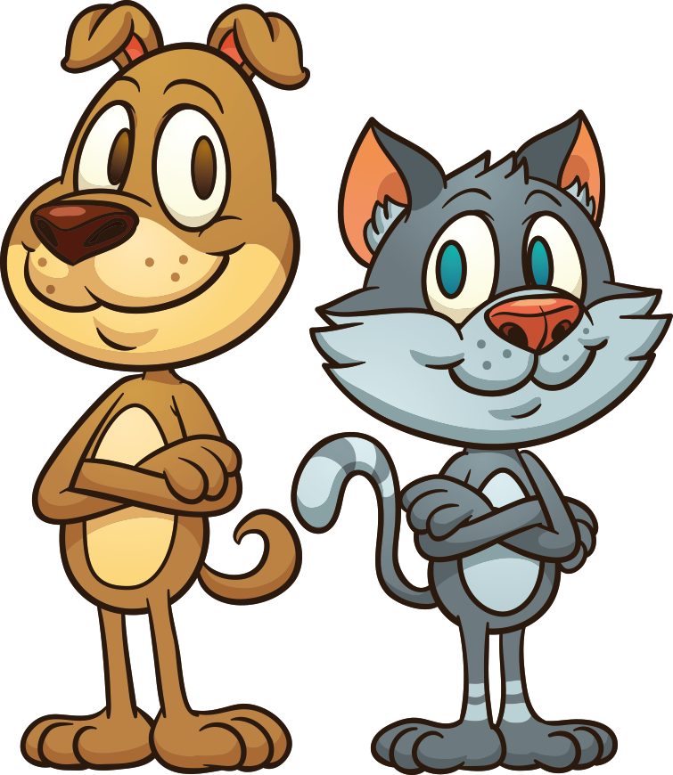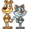 Se trata de una ilustración siguiendo el estilo de dibujos animados, de un gato y un perro. Quedará genial en paredes clara y de todos azulados.