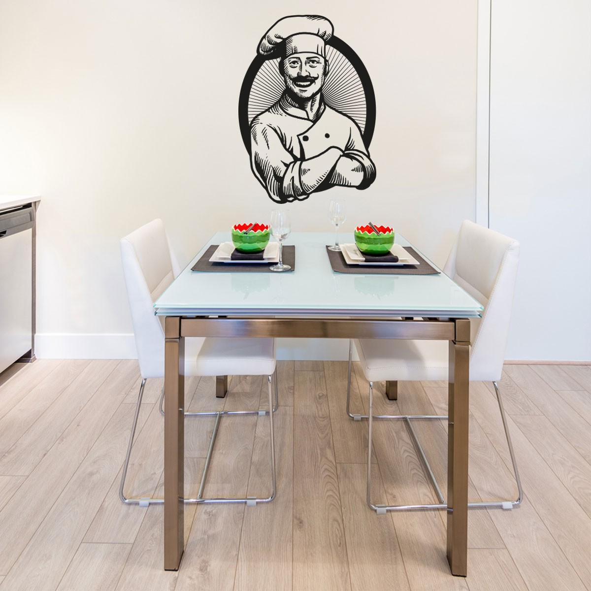 ¿Quieres darle un toque vintage a tu cocina o restaurante? Este vinilo de chef retro presidirá la mesa o la encimera. ¡También ideal para restaurantes!