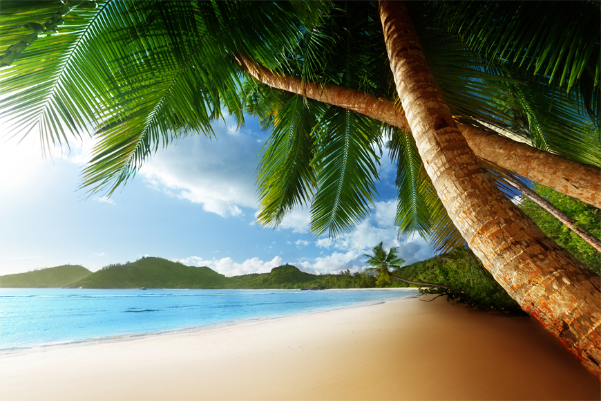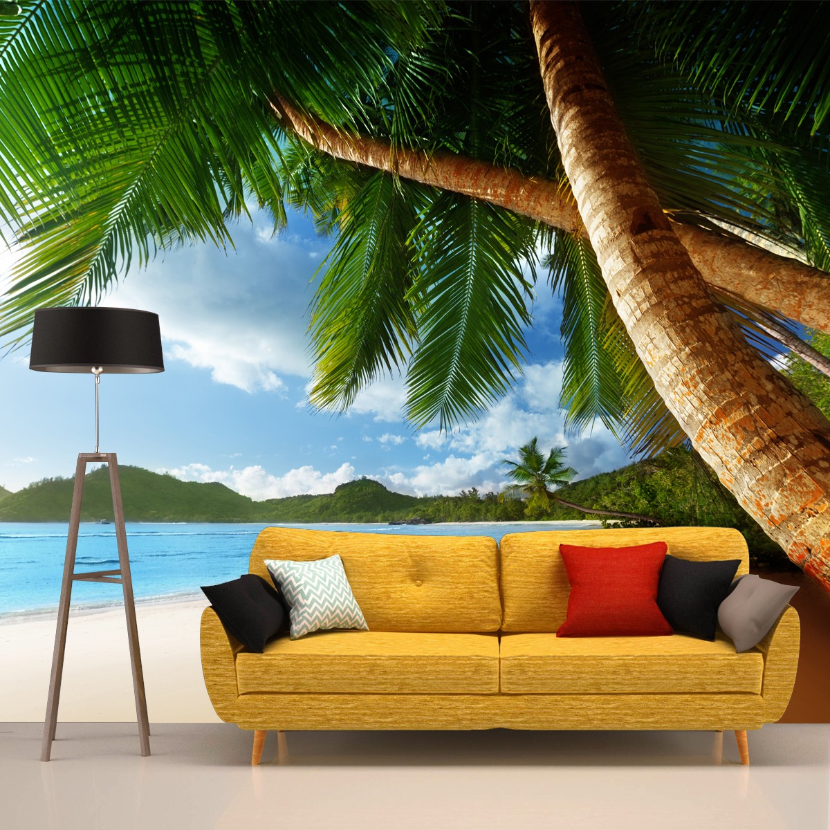 Convierte tu salón en un refuhio a la sombra de una gran palmera en una playa exótica.