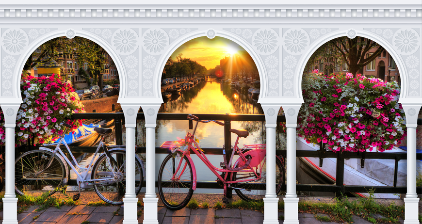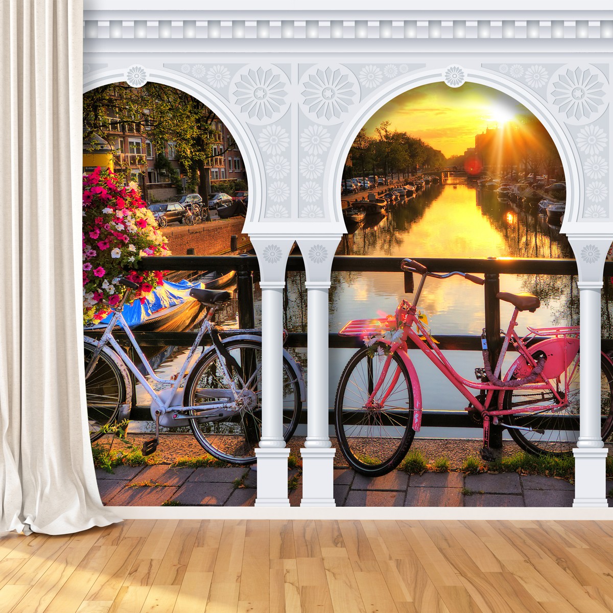Ámsterdam, la llamada Venecia del norte, es una ciudad europea rodeada por canales y bicicletas. Con este fotomural de Ámsterdam tendrás una vista idílica de sus canales con un toque árabe.